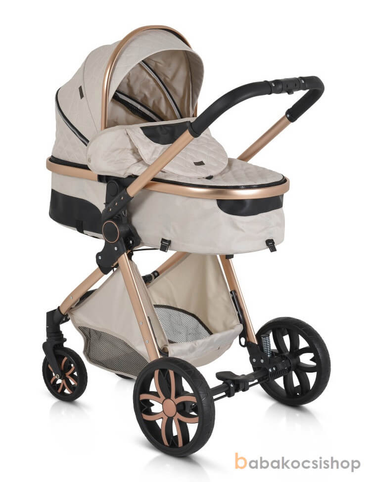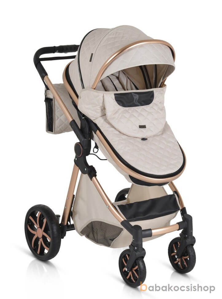 - Az Alma kombinált babakocsi kiváló minőségű, biztonságos anyagokból készült, és tartalmazza az összes szükséges tartozékot és modult, mint például:
