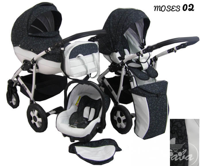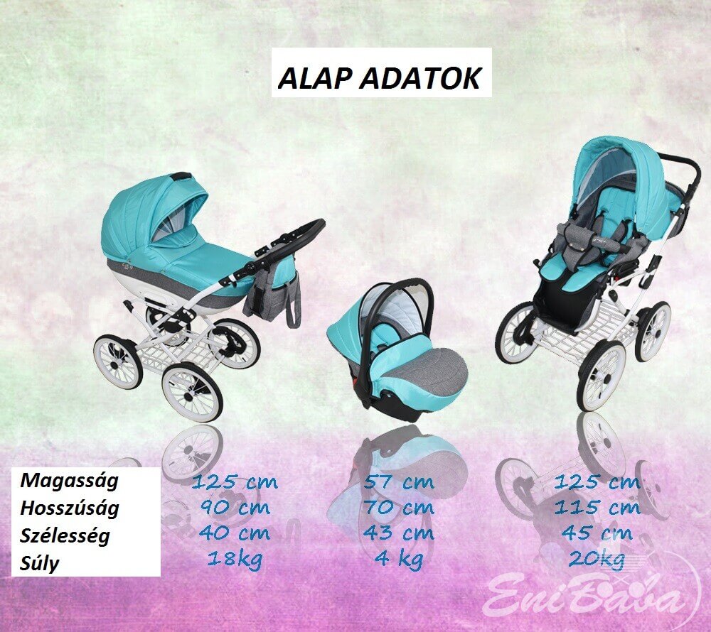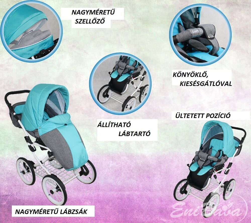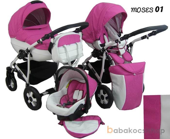 - Multifunkciós babakocsi: babakocsi vázszerkezet +mózeskosár+sportrész+autósülés babakocsi színével azonos.