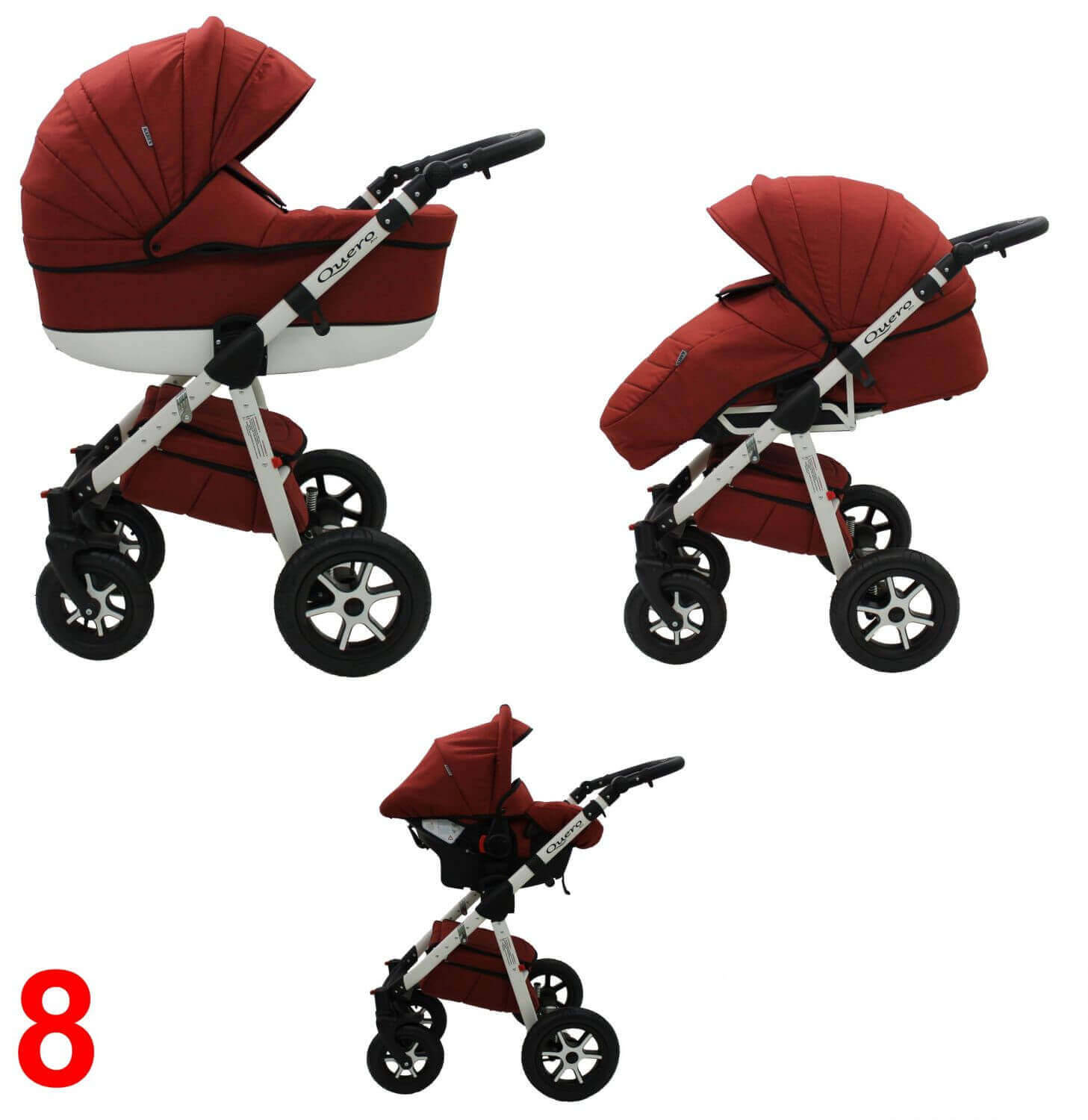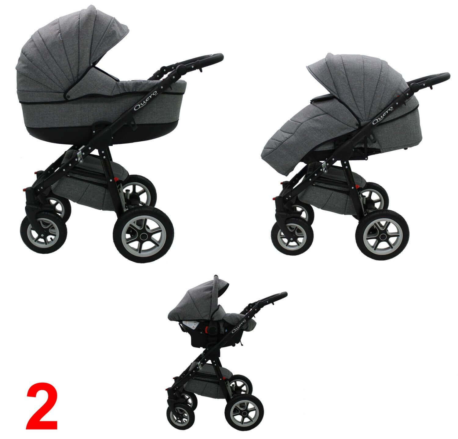 Minden feltét (mózeskosár, sportrész és autós hordozó) cserélhető, és mindkét irányból rögzíthető.