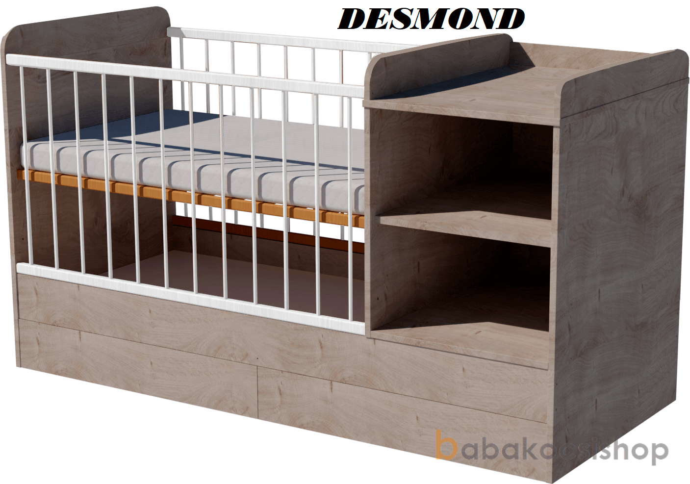 - A pelenkázó szekrény szabadon variálható az ágy mindkét oldalára.