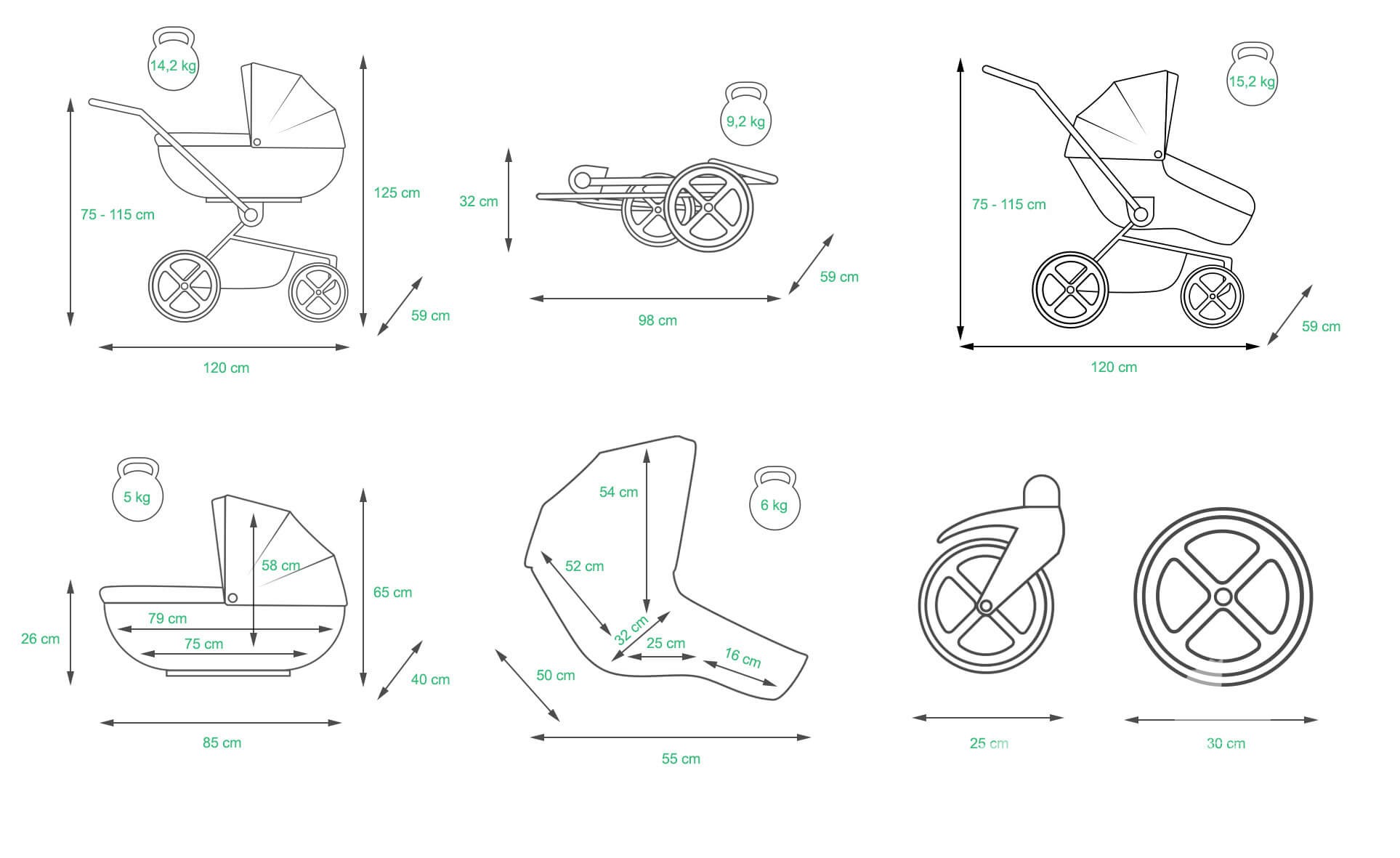 - A babakocsi szerkezete könnyű elliptikus profilokból készült, míg a babakocsi gördülékeny mozgásáért az innovatív, poliuretán gumiabroncsokkal ellátott, csapágyazott kerekek felelnek.