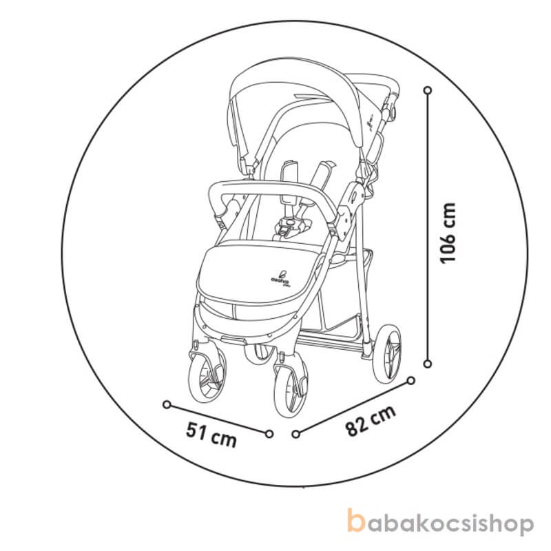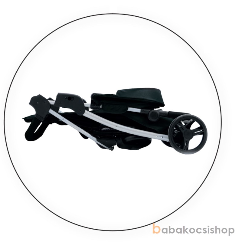 • Lapra csukható, fémvázas, teli tolókaros babakocsi, elől bolygósítható kerekekkel.